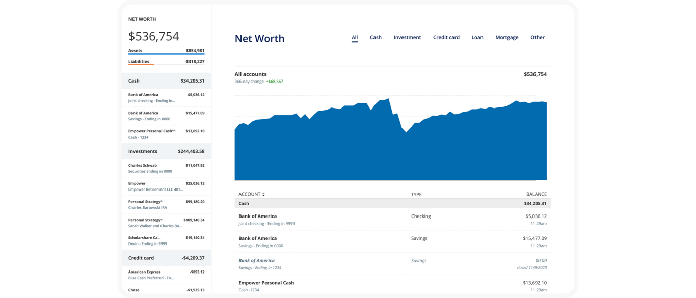 The Empower Dashboard™ gives me a full picture of where I am financially without having to log in to all my accounts. It definitely makes my financial life clearer and easier.