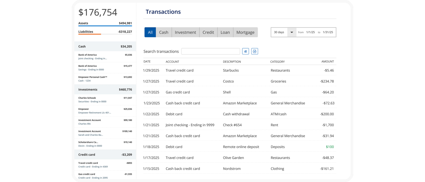 - Gain clarity on transactions across all your accounts.