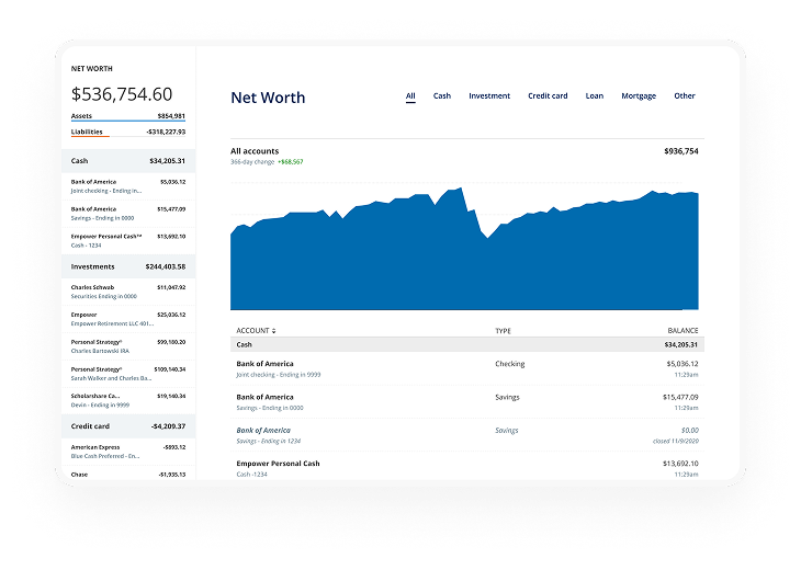 The Empower Dashboard™ gives me a full picture of where I am financially without having to log in to all my accounts. It definitely makes my financial life clearer and easier.