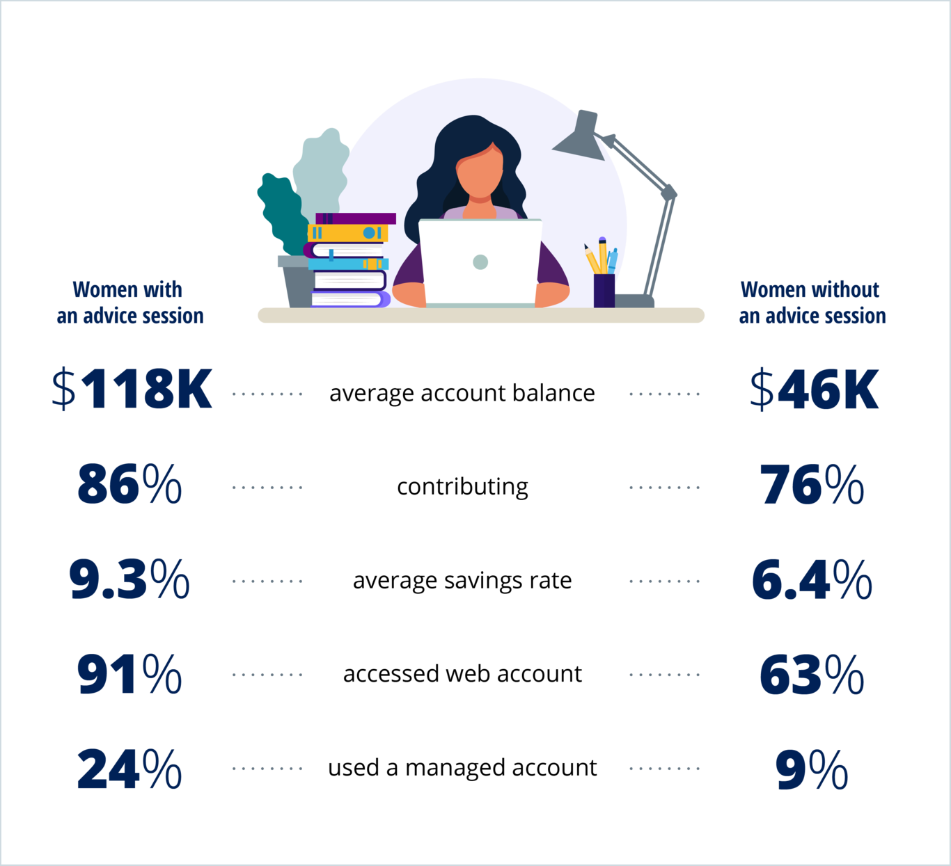 Like the positive correlation between advice sessions and key retirement planning metrics, many positive trends are further reflected by individuals who take action following their advice sessions.