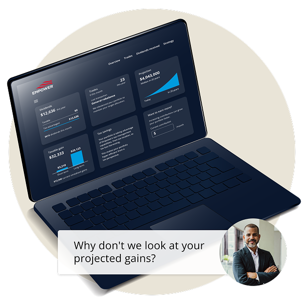 Your dashboard provides a transparent, real-time view into your investments, so you and your advisor can engage with and communicate about your portfolio. View insights, try “what if” scenarios, and much more,