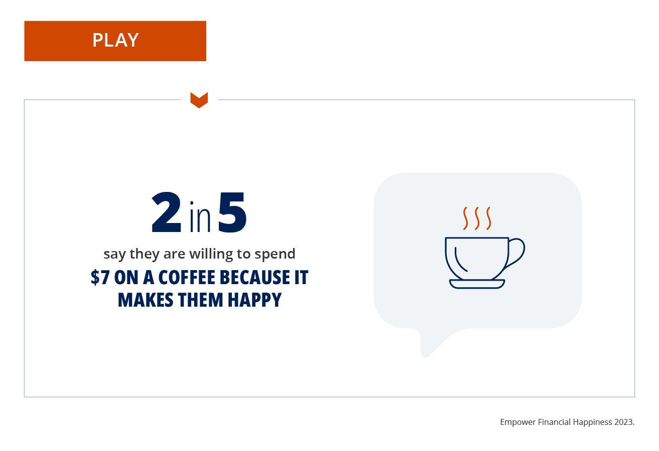Independence, resilience, and generosity are strongly linked to feelings of financial happiness: a majority say they will know they’ve reached it when they don't have to rely on anyone else financially (87%), can withstand unexpected financial needs (87%), or are able to financially take care of loved ones (84%). For many, happiness is also defined by financial flexibility in the here and now, with 62% of Millennials saying they’re willing to spend $7 on a daily coffee because of the joy it brings.