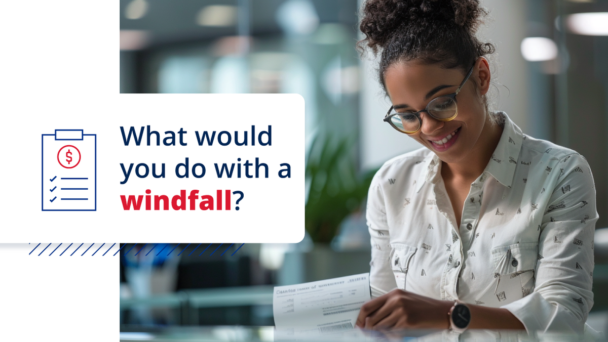 A little windfall can do wonders, according to Americans. Common windfall scenarios include receiving an annual bonus, tax refund, an inheritance, or even a big lottery win. What would you do with unexpected financial gains? Americans are most likely to save or invest the money (65%), pay off debt (52%), or use the funds for immediate financial relief (37%), like paying their bills.