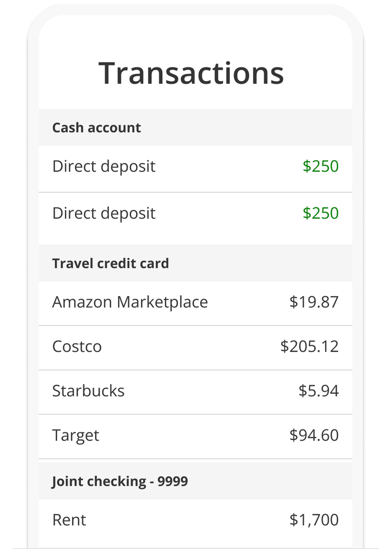 - Gain clarity on transactions across all your accounts.